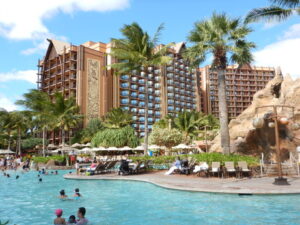 ハワイ旅行記 vol.2 アウラニの流れるプール ゆらゆらとプチ冒険 リゾート内を見学しながらプールへ。エレベーター付近から見ると、こんな感じ。 プールサイドにミッキー&ミニー。記念写真を撮れます。ただ、常時...