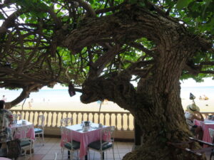 われわれは屋外のテラス席に座りました。