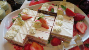 最大の特徴は、和のテイストをほどよく取り込んだバランス感覚の良さではないかと思います。日本色を前面に押し出したアフタヌーンティーも最近では見ますが、ここは過剰ではありません。ベースは洋風なのですが、ここぞのピンポイントで、きらりと日本らしさが光るのです。とても戦略的で、洗練されています。外国人客を意識している面はあるかもしれませんが、それよりも、和の要素がほとんどないフォーシーズンズ丸の内のアフタヌーンティーと差別化を図る意味の方が強いのではないかと感じました。