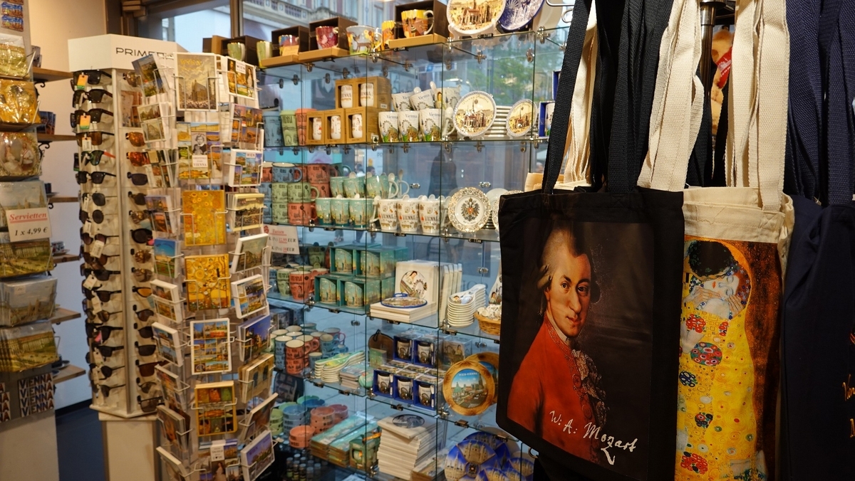 店は「Mostly Mozart」(ほぼモーツァルト)という名前を冠していますが、それほどモーツァルト推しといった感じはありません。ここにしかないモーツァルトグッズがあるようにも見受けられず、他の土産物店とそれほど変わらない印象です。モーツァルトグッズを求めるなら、後述するモーツァルト・ハウスのショップに行くのが一番いいと思います。