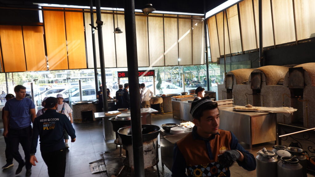 われわれは見学および写真撮影だけのために来て、食事はしませんでした。あまりお腹が空いていなかったことが一番の理由ですが、加えて言うと、今回の旅行を通じて、そこまでプロフというものの味に惹かれていなかったのもあります。ウズベキスタン料理でいうと、他においしいものはいくつもありましたから。
