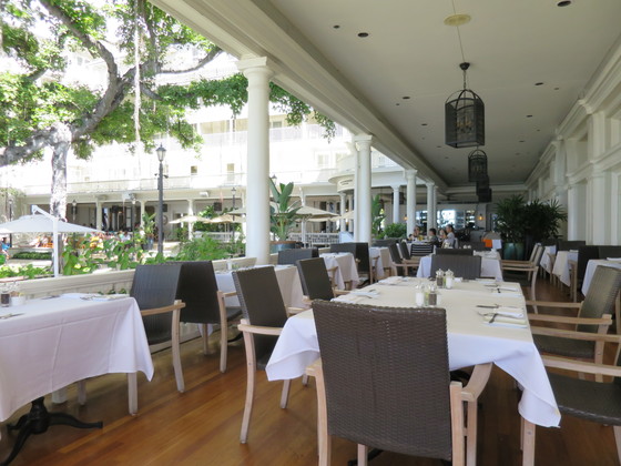 4日目: 雰囲気最高のザ・ベランダ 朝は遅めの起床。朝食と昼食を兼ねて、モアナ・サーフライダー・ウェスティン・リゾートにアフタヌーンティーに行きます。 開放的で明るい中庭。背の高いバニヤンツリーがホテルの長い歴史を物語ります。ツリーの下に設...