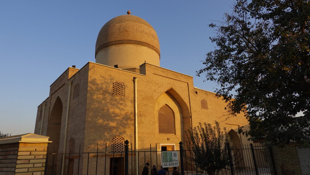 アクサライ廟はグーリ・アミール廟のすぐそばにあるのですが、観光客があまり通らない住宅地の先にあるので、道を間違わないようにしましょう。「アクサライ」は「白い宮殿」を意味するとのことです。