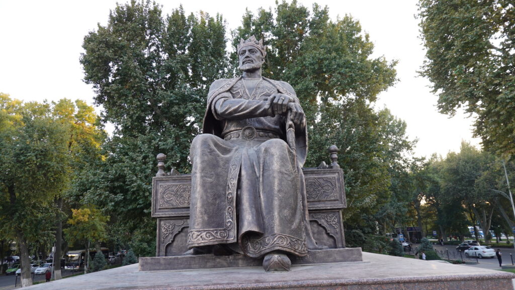 ホテルへの帰り道に、ティムール像を見ます。ティムール像は、主要道の交差点に据えられています。