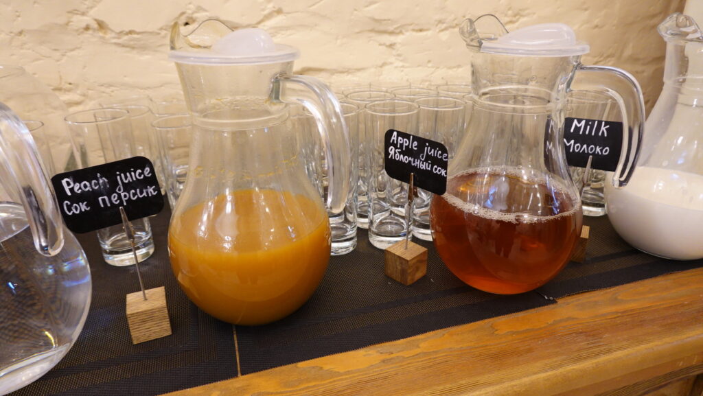 ジュースはピーチとアップルの用意がありました。牛乳も置いてあります。