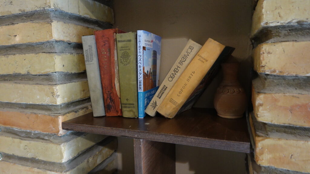 朝食会場の入り口にある棚には、カメラマン矢巻美穂さんの「はじめて旅するウズベキスタン」というガイドブックが置かれていました。その著書にこちらのホテルは紹介されています。われわれも旅行前に読んで、参考にさせていただきました。