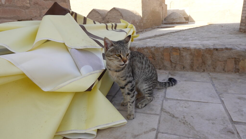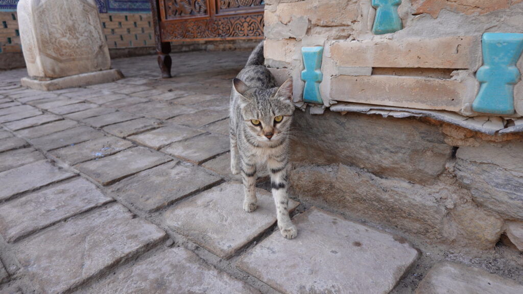 イスラム・ホジャ・マドラサからジュマ・モスクへ向かう途中、猫がいました。