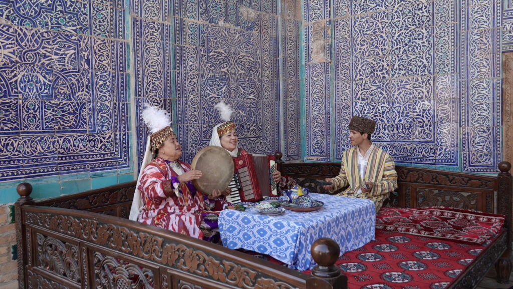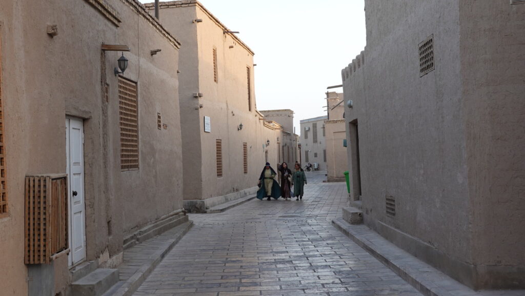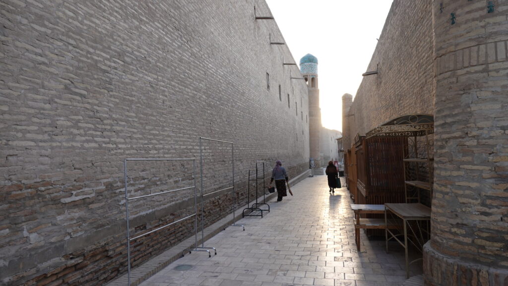 この女性たちは出勤途中でしょうか。世界遺産の街にある朝の風景です。この3人組とは違いますが、制服を着て、イチャン・カラの目の前にある学校へ通学する子どもたちの姿も見ました。観光客にとっての圧倒的な非日常と、住民たちの日常が、城内には確かに共存しています。