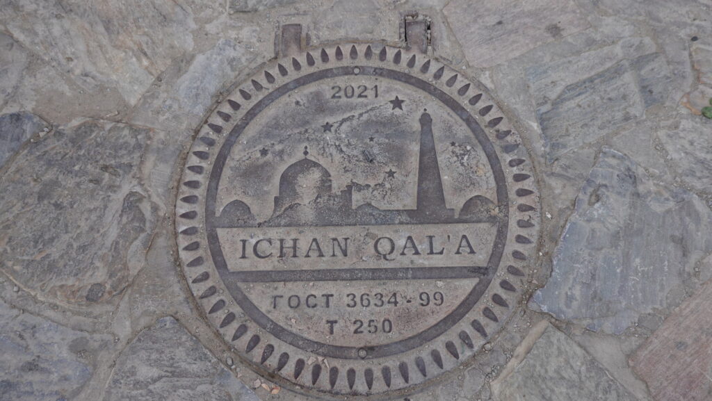 イチャン・カラのマンホールです。2021年に更新したのでしょうか。石畳との間で違和感が生じないようなデザイン、色合いになっています。
