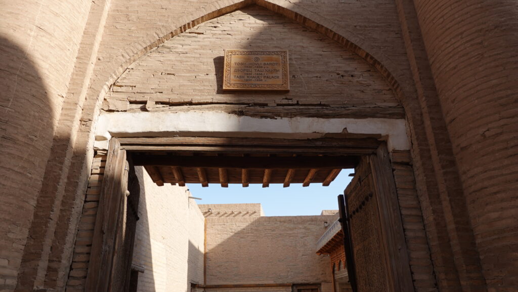 タシュハウリ(Tosh Hovli)は、「石の庭」を意味します。日干しれんがだけではなく、石やタイルが多く使われたことからそのように呼ばれるようになったとのことです。ちなみに、Toshを用いた最も有名な名称は、ウズベキスタンの首都タシケント(Toshkent、石の町)でしょう。