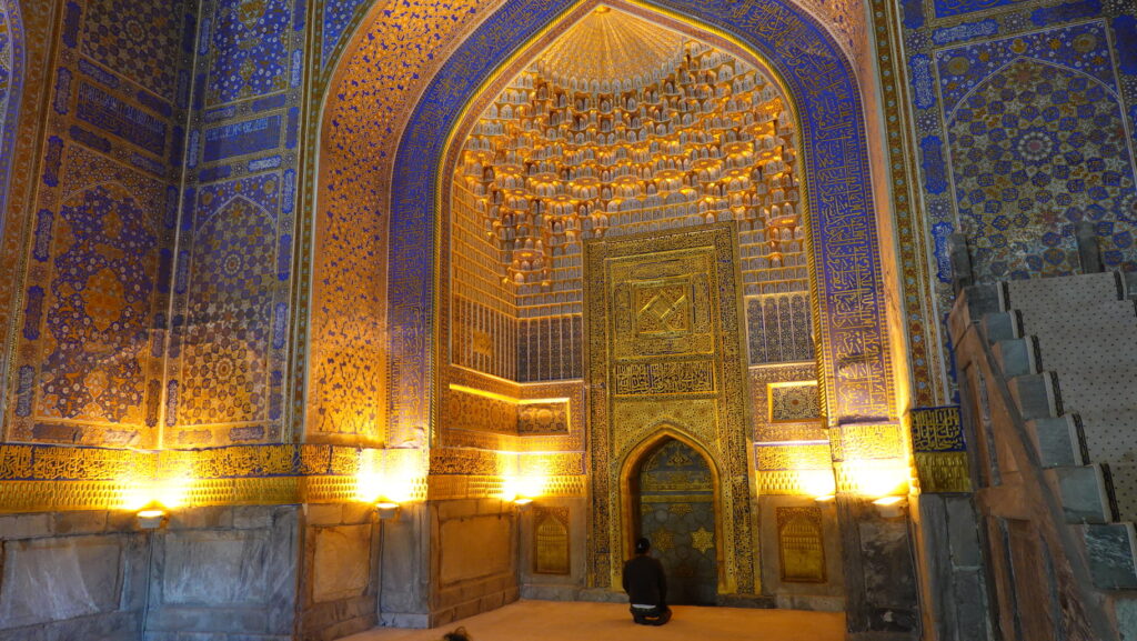 レギスタン広場 ティラカリ・マドラサの美しすぎる「宇宙空間」に包まれて 完成に導いたヤラングトゥシュ・バハドゥールって誰だ? ウズベキスタン個人旅行 6泊8日でサマルカンド、ブハラ、ヒヴァ、タシケントの名所を制覇⑦