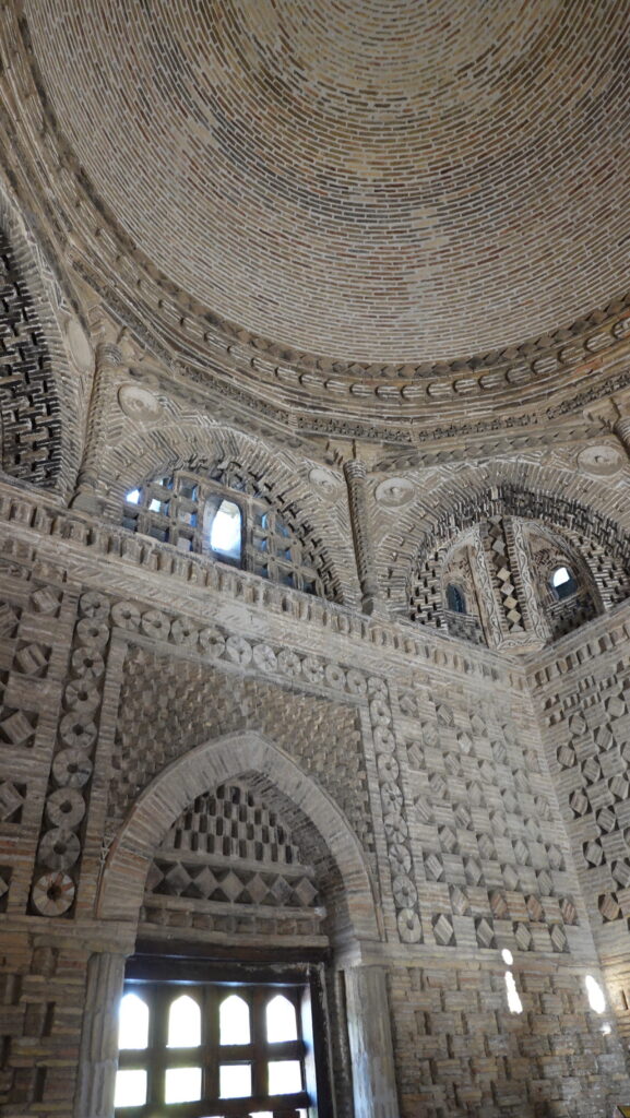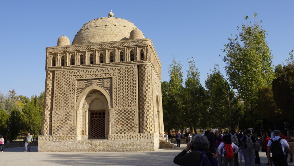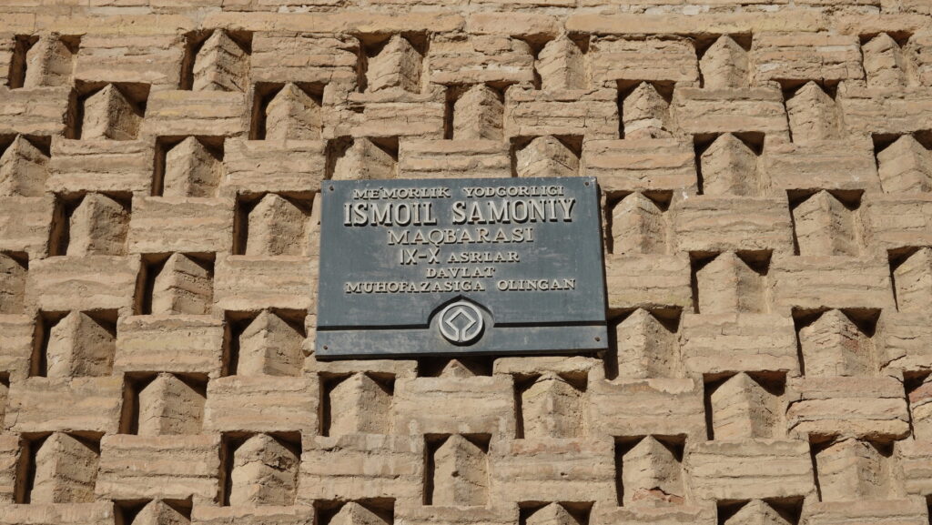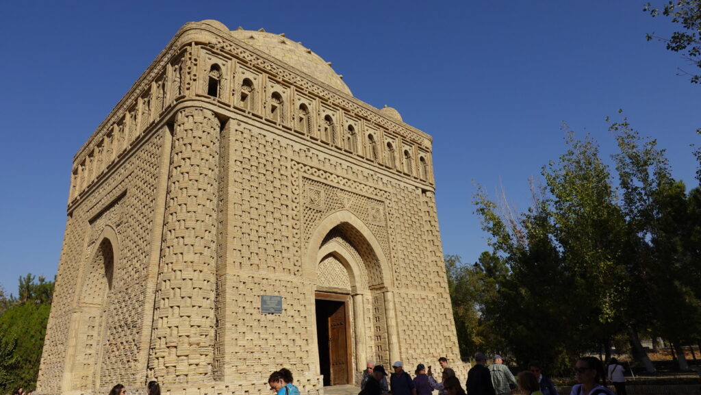 直方体の上に円形ドームが乗った形状です。建設されたのは、892~942年とのこと。レギスタン広場で最古のウルグベク・マドラサが建てられたのは1420年ですから、それより500年近く前ということになります。色とりどりのタイルが用いられたレギスタン広場のマドラサと比べて、建築様式が違うことが一目で分かります。