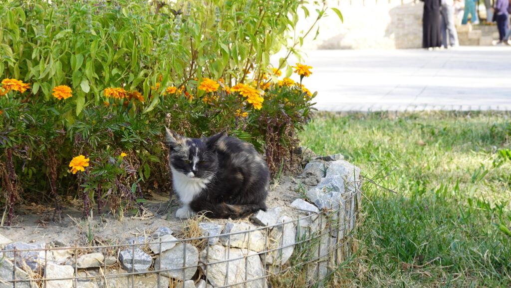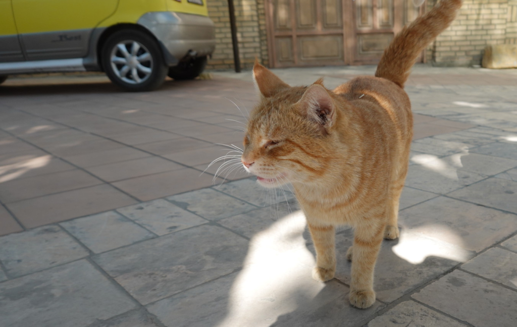 そして、ボロハウズ モスクの近くにも、猫がいました。茶トラです。呼んだら、向こうから駆け寄ってきました。ブハラの猫は、とにかく人懐っこいです。