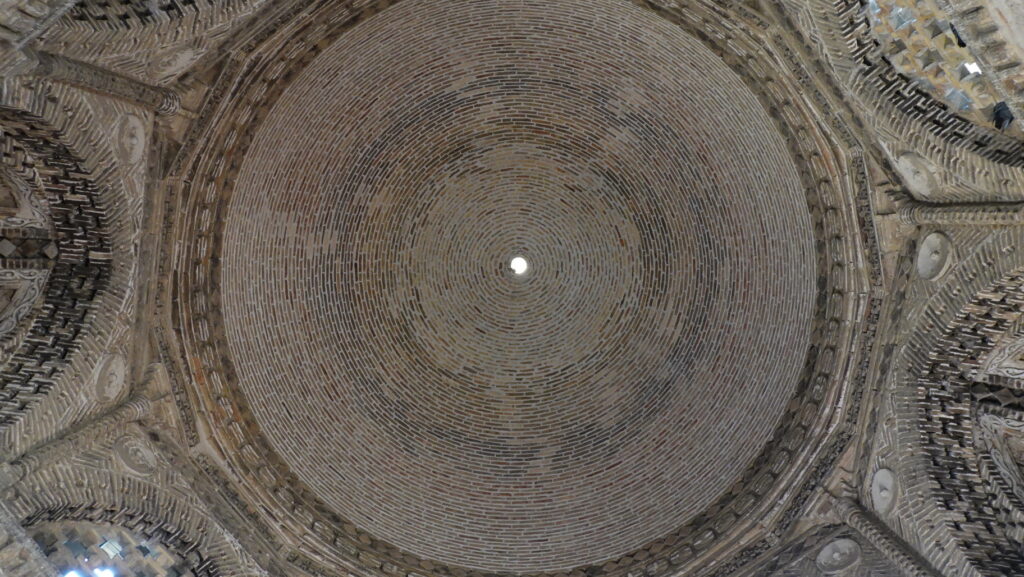 内部です。さまざまな形のれんがが、精密に積み上げられています。1000年以上も前の建築物とは思えない空間です。幾何学の世界を徹底的に掘り下げれば、それは宗派や人種の違いを超えて、誰の目にも美しく映る普遍的な芸術になり得るという好例でしょう。