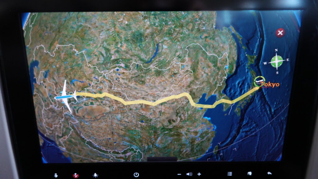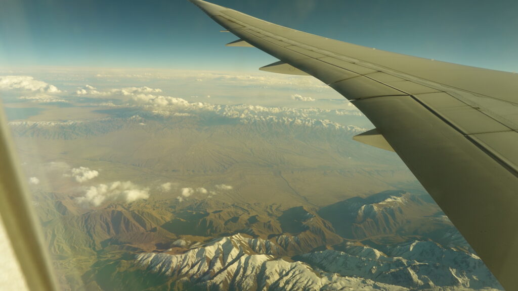 このような航路でタシケントに向かいます。中国の領空を延々と飛び、カザフスタン、キルギスを経て、ウズベキスタンに入ります。